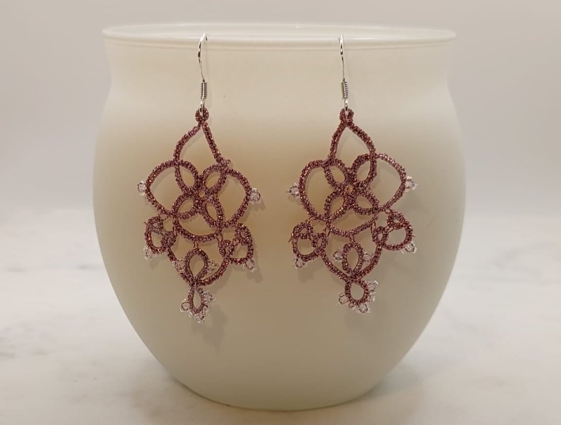 Ein Paar handgefertigte Ohrringe in Frivolité Spitze
